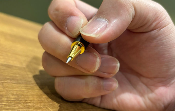 キャップを外して書くスタイルは、どこか万年筆に近い感覚。