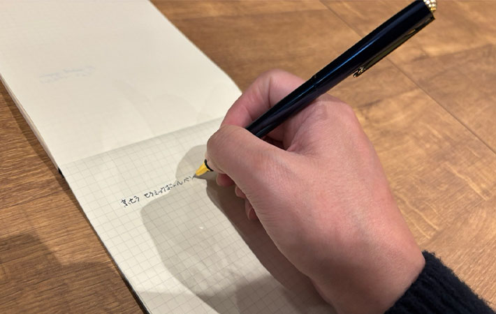説明文に目を通すも、書き心地や使い勝手は想像がつかなかった筆者。「一体、どんなボールペンなんだ…?」と興味が膨らんでいくばかり。