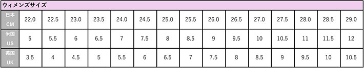 ウィメンズシューズのサイズ換算表はこちらです。