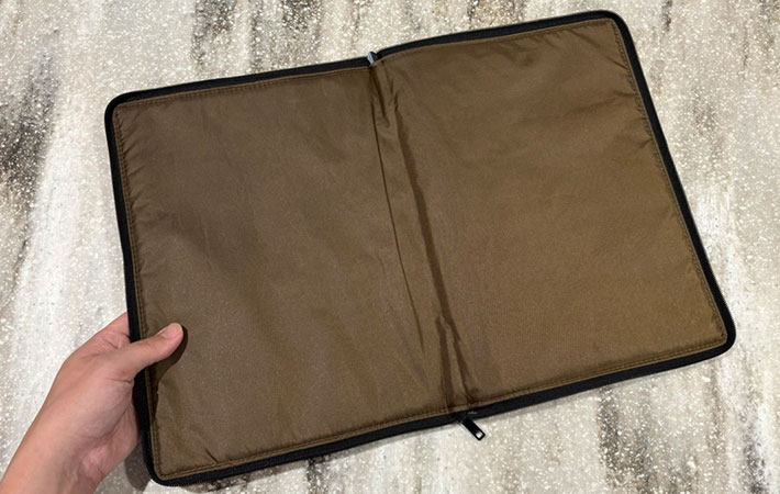 バッグインバッグとしてだけでなく、これ単体でクラッチバッグやパソコンケースのようにして使うのもアリです。