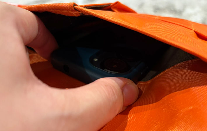 フラップありのポケットもスマホが入りますが、筆者のスマホではジャストフィットといった感じ。