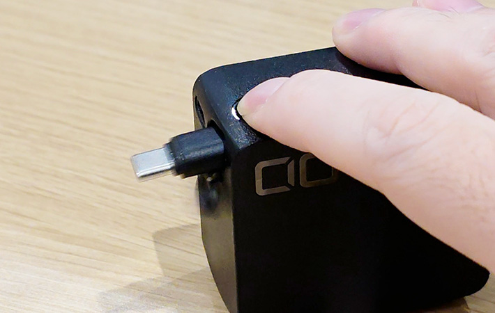 このボタンを押すと、USB-Cケーブルの先端がパシュッと勢いよく飛び出します。