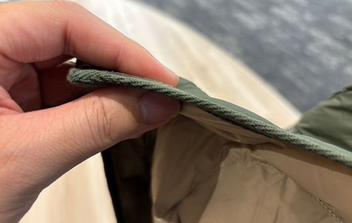 前述の通り、『ミリタリー オーバーサイズクルーネック ダウンコート』は軽くて生地が薄め。