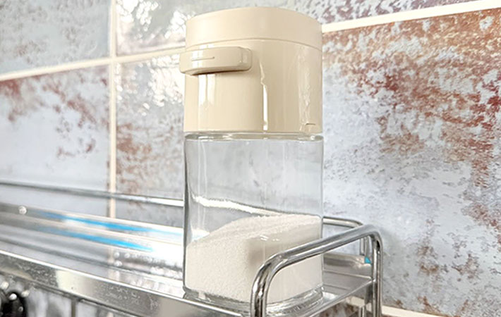 最大の特徴は、本体を逆さにしてボタンをワンプッシュするだけで、『少々』の量を安定して出せること。