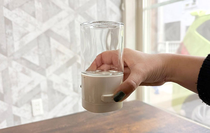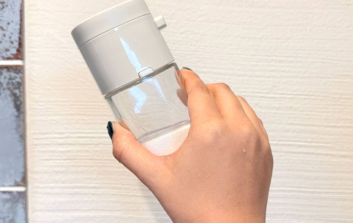 斜めの状態だと正確に計量できない場合があるため、真逆さまにしてからプッシュするのがおすすめです。