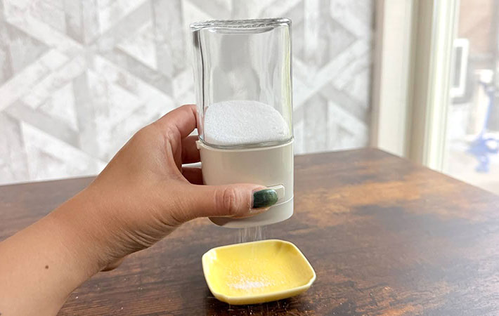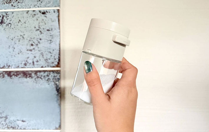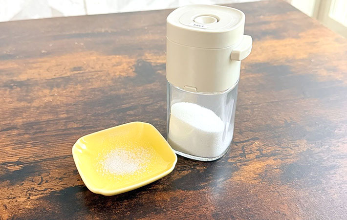 指で塩をつまむ必要がないため、手が濡れていても使いやすいのが魅力。