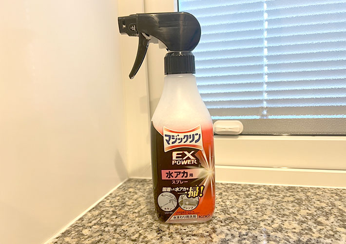 筆者が水垢を落とすのにいつも使っているのが、『マジックリン EXPOWER 水アカ用スプレー』。