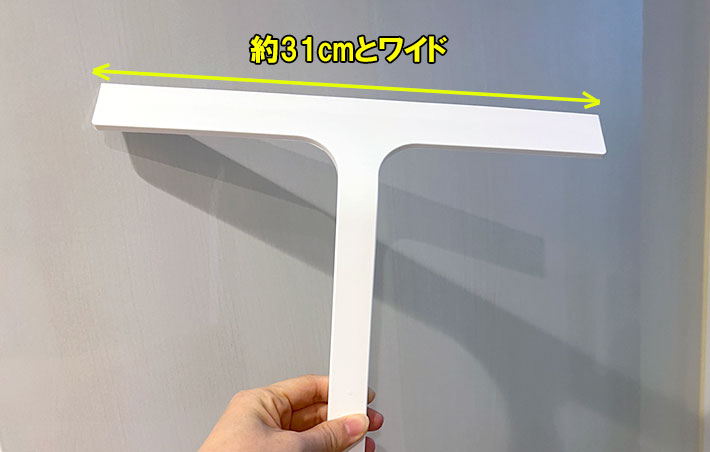 山崎実業の水切りワイパーは、ワイパー部分がワイドなので、30cmまでの鏡なら一度ですっきり水切りができます。