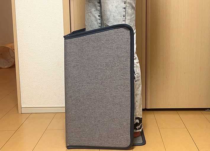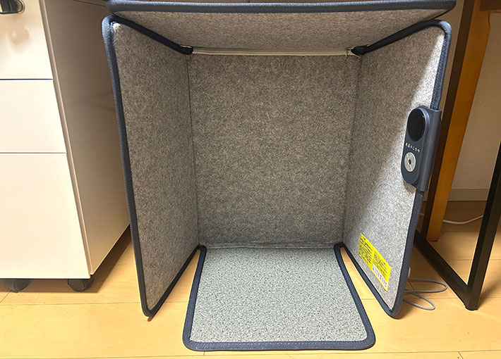 天板をファスナーで取り付けると、すっぽり足元を囲ってくれる形に。これで『パネルヒーター』の完成です。