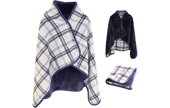 表はフリース、裏は保温性の高いフランネル素材で、着る毛布のようにも使える大きなサイズです。