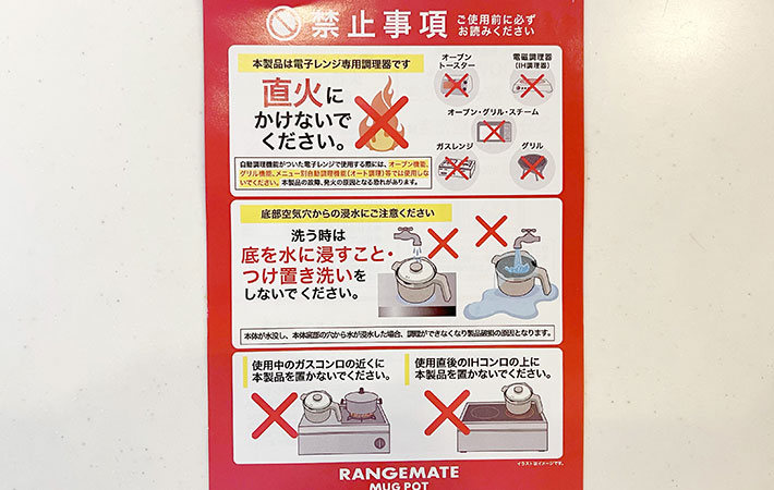 『つけ置き洗いNG』など、事前に目を通しておかないとうっかりやってしまいそうなことも禁止事項に含まれているので、最初によく読んでおきましょう。