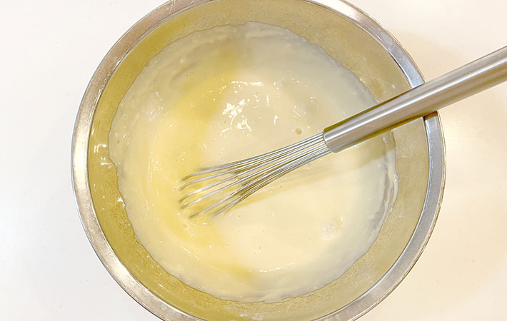 生地の作り方はとっても簡単で、ホットケーキミックス、牛乳、卵、サラダ油を、ダマが残らないようによく混ぜておくだけでOK!