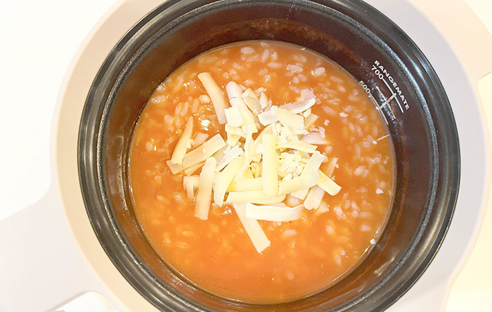 加熱が完了したら、とろけるチーズを入れて2分加熱。