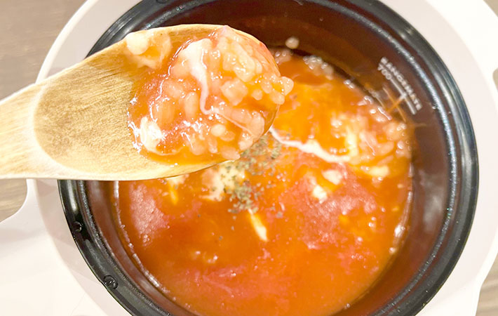 調理後の温度をキープできるよう設計されているので、最後まで熱々。味も文句なしで、トマトの旨みがご飯によく染み込んだ、絶品リゾットでした。