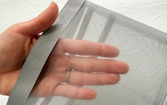 最大の特徴は、中身が透けて見えるメッシュ素材でできていること。