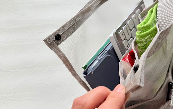 バッグと違う色を選ぶと、中身がより見分けやすくなりますよ。