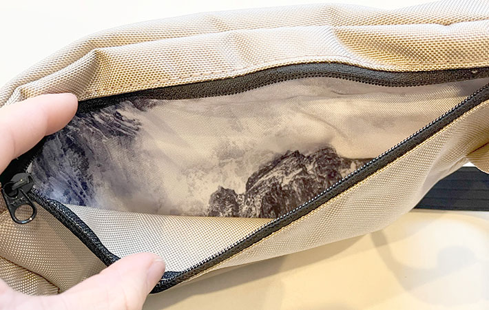 個人的に一番のお気に入りポイントが、バッグ内部に施された山のプリント!