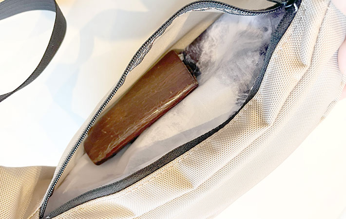 厚みがあってかさばりがちな三つ折り財布も、なんの支障もなくスッポリ収まりました。
