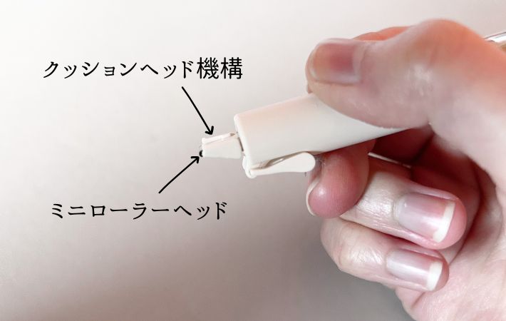 まっすぐな線で修正できるのは、『ミニローラーヘッド』と『クッションヘッド機構』というメーカー独自の構造のおかげ。