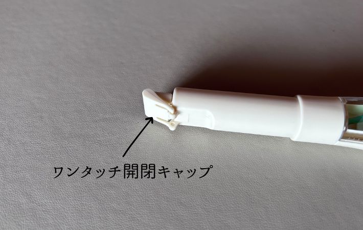 キャップがワンタッチで開き、使用中にブラブラしない点もよく工夫されていると感じました。