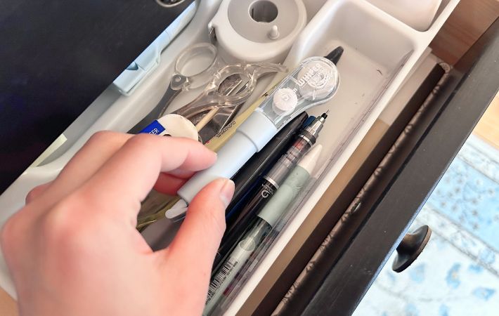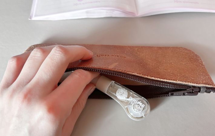 書き間違えた文字をサッと消したいだけなのに、修正テープは形状的にかさばってペン立てに入らず、収納場所に困ってしまう。