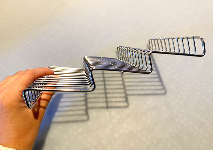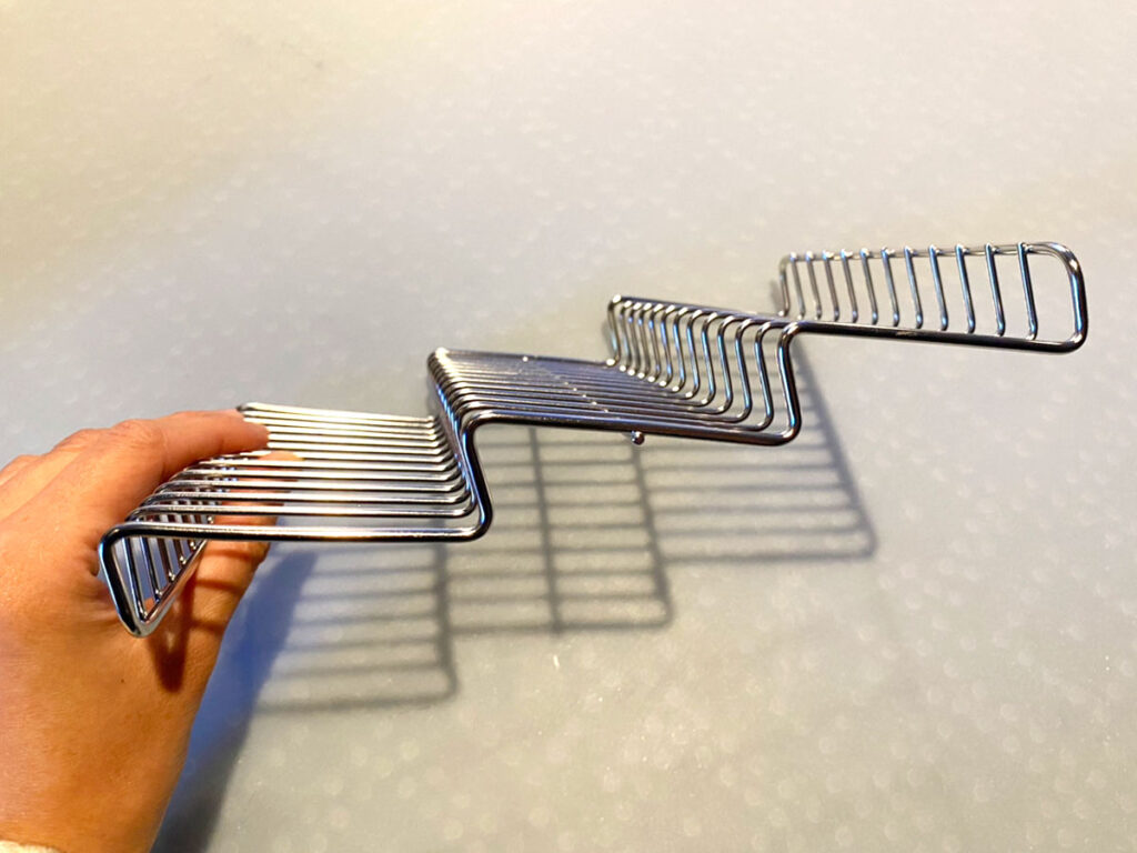 バットと一緒に使うステンレス製のアミなのですが、最大の特徴がこの波型のフォルム!