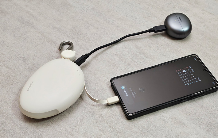 外出中の充電がスムーズになったのはコレのおかげ TORRASが重視したのはサイズや出力より『取り出しやすさ』 ガジェット By - あずま 更新:2026-01-05 ※本記事はUPDATEが独自に制作したコンテンツです。また、本記事を経由して商品の購入が発生した場合に、ECサイト等から送客手数料を受領することがあります。 外出中にスマホの電池が切れそうになった時、あると心強いのがモバイルバッテリーです。 ただ、カバンの中から取り出すのが面倒だったり、充電中はバッテリーを手に持たなければならなかったりと、使うたびに小さなストレスを感じることもあります。 そんな悩みをスマートに解決してくれるのが、『トラス(TORRAS)』のモバイルバッテリー『FlexLine Pebble』。 カバンに収納しなくても使えるよう、持ち運びや充電のしやすさに工夫が凝らされており、毎日の通勤や通学はもちろん、アウトドアのようなアクティブシーンでも活躍してくれます。 『FlexLine Pebble』なら取り出さずに充電できる 『FlexLine Pebble』は、容量10000mAhのモバイルバッテリーです。 Amazonで見る 楽天市場で見る 製品名に含まれている『Pebble』は、丸みを帯びた小石を意味する言葉。 その名の通り、角のないやわらかなフォルムが特徴で、無機質になりがちなモバイルバッテリーのなかでは少し珍しいデザインに感じました。 サイズ感はコンパクトとは言えませんが、マットな質感と丸みのある形状で手に馴染みやすく、実際に持ってみると大きさほどの重さは感じません。 最大の特徴は、頑丈なカラビナが本体に搭載されていること。 一般的なモバイルバッテリーは、使いたい時にカバンを降ろして中を探す必要があります。 バッグインバッグやポーチを使っている人の場合、取り出すまでにワンアクション増えてしまい、少し面倒に感じることもあるでしょう。 その点、『FlexLine Pebble』はカバンのストラップなどに引っ掛けて持ち歩けるため、必要な時にすぐ手に取れます。 毎回カバンから出し入れする手間がないだけでも、使い勝手はかなり変わりました。 さらに便利なのが、本体に内蔵された長さ70cmの巻き取り式ケーブルです。 モバイルバッテリーをカバンの外につけていても、別途ケーブルを取り出す必要があると、結局ひと手間かかってしまいます。 『FlexLine Pebble』なら、ケーブルを引き出すだけですぐにスマホを充電できますよ。 巻き取り式のUSB-Cケーブル ケーブルは無段階で長さを調節できるため、余った部分がブラブラしたり、絡まったりする心配もありません。 また、ケーブル部分には指を引っ掛けられる小さな突起がついています。 ほんのわずかな工夫ですが、この突起があるおかげで、慣れてくると目で確認しなくても指先の感覚だけでケーブルを引き出せるようになります。 急いでいる場面ほど、こうした使い勝手のよさがありがたく感じました。 カバンに引っ掛けたまま充電できるのが便利 出力は最大35W。ノートパソコンの充電にはやや物足りなさを感じますが、スマホの急速充電用としては十分なスペックです。 内蔵ケーブルの隣にはUSB-Cポートも搭載されているため、別途ケーブルを用意すれば、最大で2台のデバイスを同時に充電できます。 『FlexLine Pebble』は、モバイルバッテリーを持ち歩く手間や使う時の小さなストレスから解放してくれる1台でした。 カラビナつきのため、落下や置き忘れのリスクを減らせるのも安心できるポイントです。 外出先での充電をもっと気軽でスムーズにしたい人は、ぜひチェックしてみてください! Amazonで見る 楽天市場で見る [文・構成/UPDATE編集部] 出典 Amazon/楽天市場 関連ワード モバイルバッテリー検証 この記事をシェアする Share Post LINE