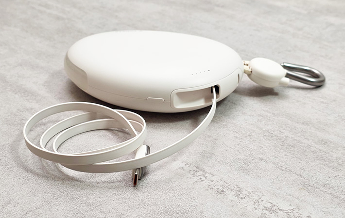 その名の通り、角のないやわらかなフォルムが特徴で、無機質になりがちなモバイルバッテリーのなかでは少し珍しいデザインに感じました。