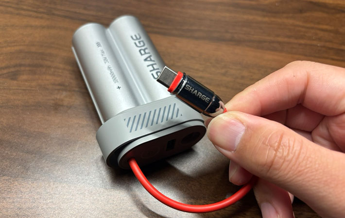 ちなみに『SHARGE Pouch Mini』にはUSB-Cケーブルが内蔵されていますが、これがなかなか便利です。
