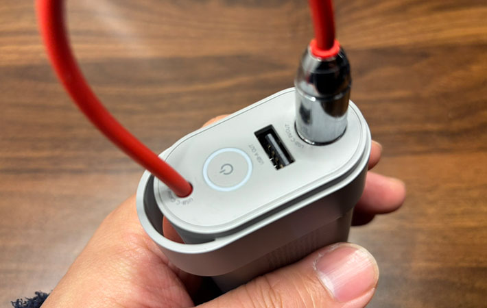 内蔵ケーブルのほかにもUSB-CとUSB-Aの差込口が1つずつついているので、最大3台同時に充電可能となっています。