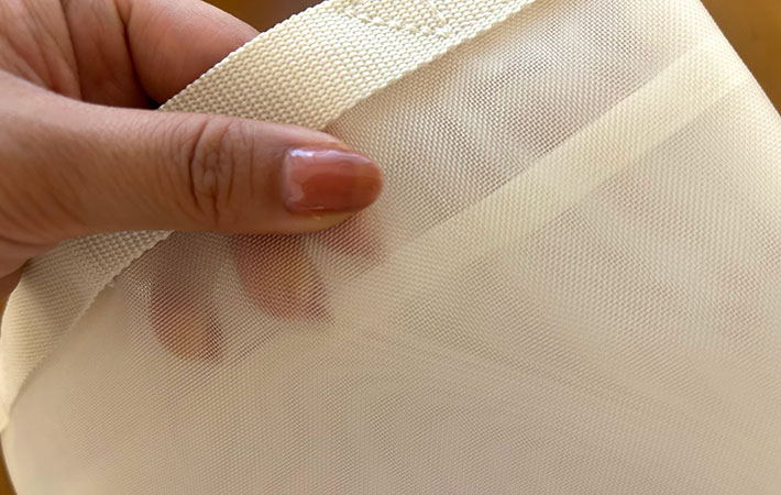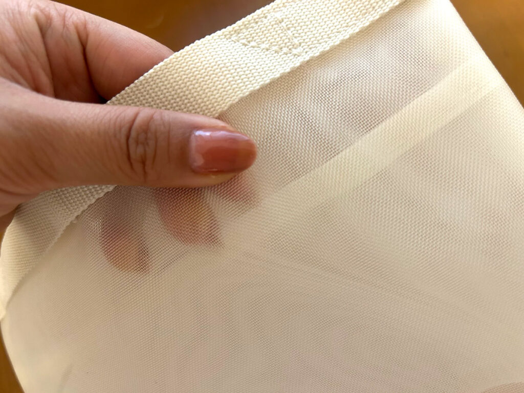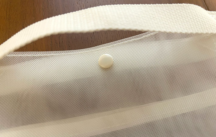 素材は軽くて丈夫なナイロンメッシュ生地。中身が見えるので、何が入っているか一目で分かります。
