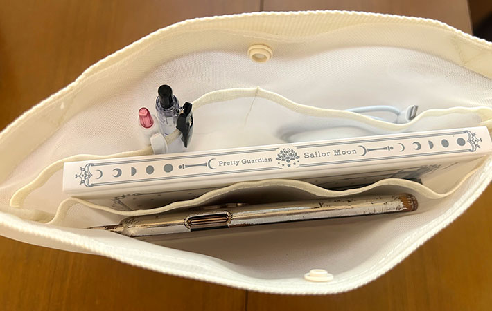 マチもしっかりあり、バッグの中で自立するのも嬉しいポイント。