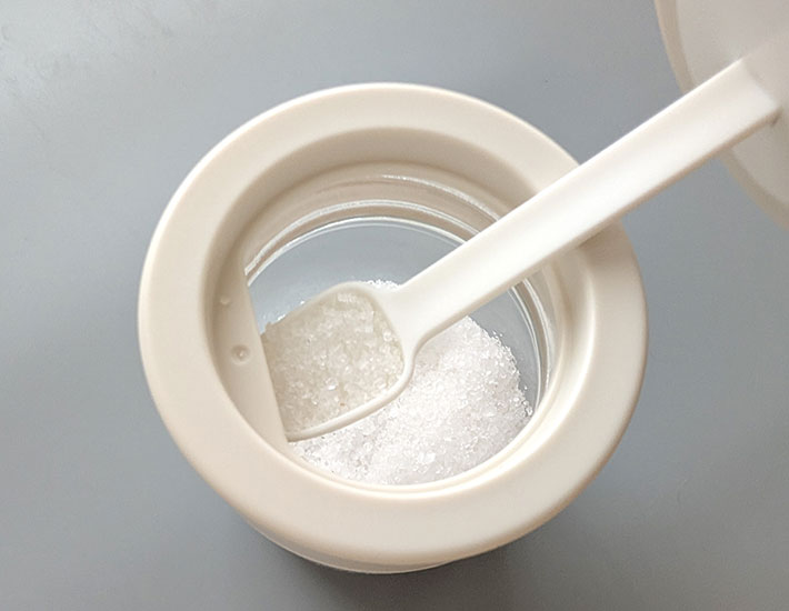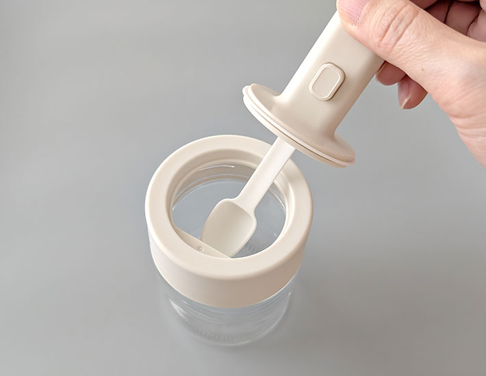 容器の中身が減ってきたらスプーンを伸ばすことができるので、「指先が粉で汚れてしまう」「中身が減ると取り出しにくい」という不快感からも解放されます。