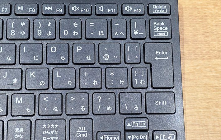 エンターキー周辺の一部のキーはやや細く設計されていますが、実際に使ってみると打ちにくさはほとんど感じませんでした。