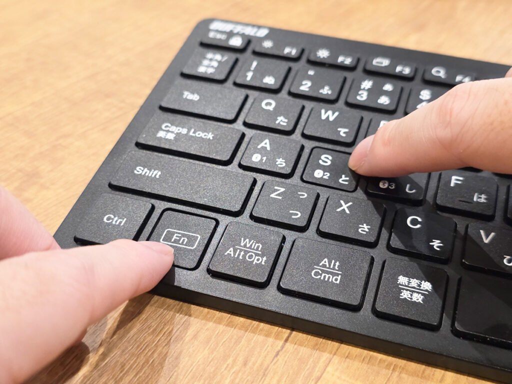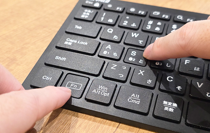 最大3台までデバイスを登録でき、FnキーとA・S・Dキーを組み合わせて押すだけで、接続先をスムーズに切り替えられます。