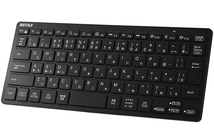 「正直ナメてた」 安くてシンプルなミニキーボードが、想像以上に実用的だった ガジェット By - あずま 更新:2026-01-07 ※本記事はUPDATEが独自に制作したコンテンツです。また、本記事を経由して商品の購入が発生した場合に、ECサイト等から送客手数料を受領することがあります。 パソコンで作業をするうえで、キーボードは欠かせない存在です。 ただ、デスクが狭いとキーボードが場所を取ってしまい、作業スペースが窮屈に感じることもあります。 一方で、コンパクトさを重視しすぎると、今度はキーが小さくて打ちにくいと感じる人も多いのではないでしょうか。 そんな悩みを解決してくれたのが、『バッファロー』のミニキーボード『BSKBB345BK』です。 狭いデスクでも扱いやすい、ちょうどいいサイズ感 Amazonで見る 楽天市場で見る 『BSKBB345BK』は、コンパクトかつ軽量なワイヤレスキーボード。 幅は30cmにも満たないサイズなので、ノートパソコンと並べて置いても圧迫感がなく、狭いデスク上にも無理なく設置できます。 マウスを動かすスペースも確保しやすく、仕事用としてはもちろん、プライベートの作業や趣味の時間にも幅広く活躍してくれます。 丸テーブルでも使いやすいサイズ コンパクトながらキー配列が自然で、タイピングしやすいのも特徴です。 キー配列 エンターキー周辺の一部のキーはやや細く設計されていますが、実際に使ってみると打ちにくさはほとんど感じませんでした。 数時間使うだけで手が慣れ、普段通りの感覚で入力できます。 エンターキー周辺のキーはやや細い キーの打ち心地が軽く、適度な反発があるおかげで、テンポよくサクサクと入力できる点もお気に入りです。 キーの構造には『パンタグラフ式』と呼ばれる、多くのノートパソコンと同じ仕組みが採用されています。 そのため、普段からノートパソコンで作業している人であれば、ほとんど違和感なく使い始められるでしょう。 テンポよくタイピングできる 奥から手前に向かって、わずかに傾斜がついているのも、スムーズにタイピングできる理由の1つです。 手首を自然な角度に保ちやすく、長時間の作業でも負担を感じにくいため、集中して作業を続けられますよ。 手首に負担がかからずタイピングしやすい 複数デバイスを切り替えて使えるワイヤレス仕様 『BSKBB345BK』は、Bluetoothを利用してワイヤレス接続できるキーボードです。 最大3台までデバイスを登録でき、FnキーとA・S・Dキーを組み合わせて押すだけで、接続先をスムーズに切り替えられます。 接続先を切り替えている様子 小型かつ軽量で持ち運びやすいため、自宅用と職場用のパソコンを登録して使い分けるのもおすすめ。 筆者はリュックに直接放り込んでいますが、心配な人はノートパソコン用のスリーブケースなどに収納すると、安心して持ち運べるでしょう。 デスクが狭くても快適に作業したい人や、持ち運びしやすいキーボードを探している人にとって、『BSKBB345BK』はちょうどいい選択肢だと感じました。 コンパクトながら打ちにくさを感じにくく、普段の作業を無理なく快適にしてくれます。 「今のキーボード、ちょっと使いづらいかも」と感じているなら、作業環境を見直すきっかけとして試してみてはいかがでしょうか。 Amazonで見る 楽天市場で見る 【スペック】 サイズ(約):幅286mm×厚さ21mm×奥行き121mm 重量(約):275g(電池含まず) 接続方法:Bluetooth 電源:単4形アルカリ乾電池、単4形マンガン乾電池、単4形ニッケル水素充電池のいずれか2本 対応OS:Windows・macOS・iPadOS・iOS・Android・ChromeOS [文・構成/UPDATE編集部] 出典 Amazon/楽天市場 関連ワード キーボードパソコン周辺機器検証 この記事をシェアする Share Post LINE