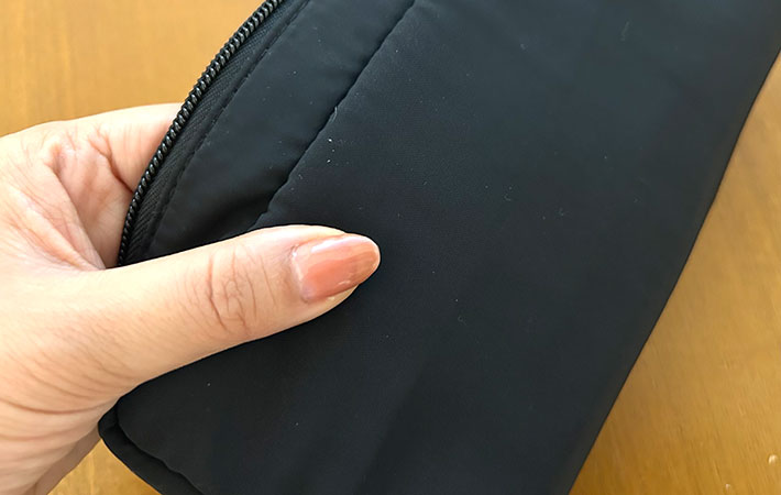 素材はポリエステル。全体にクッション性のある生地が使われていて、ガジェット類を安心して収納できます。