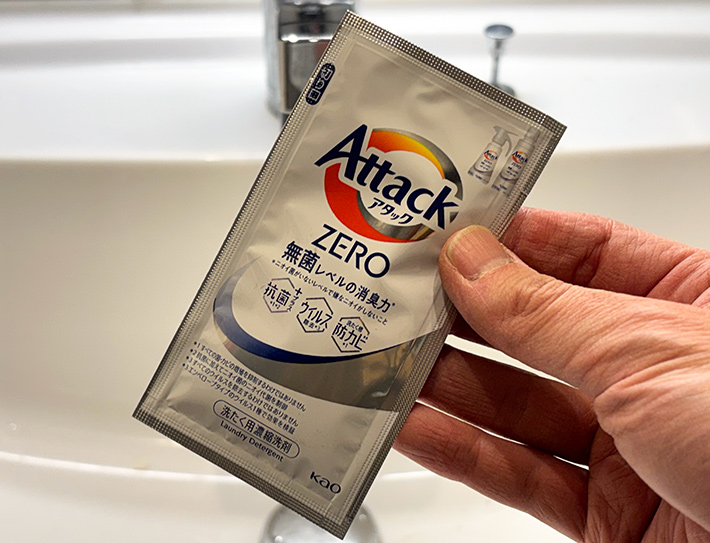 洗剤は、『袋でどこでもお洗たく』に同梱されている、1袋10gの液体タイプを使用。