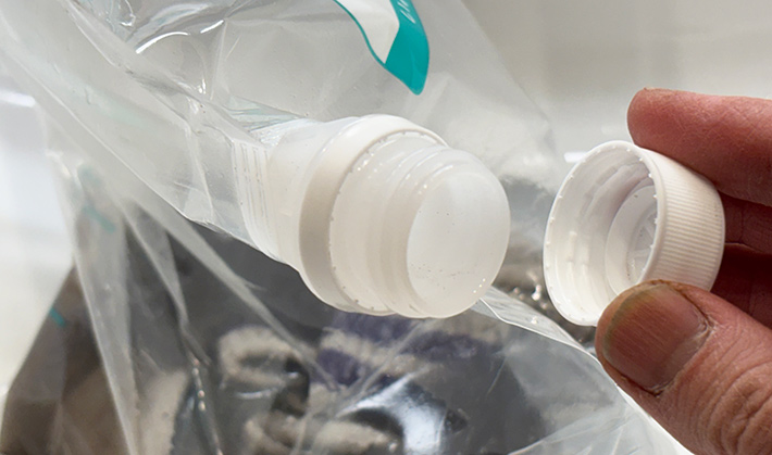 排水する時は、チャックを閉めたままキャップを外してください。