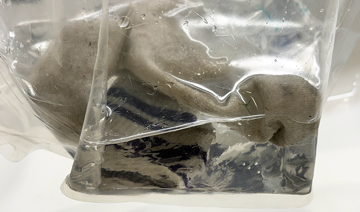 袋の外からもみ洗いをすると、みるみる汚れが落ちていきます。