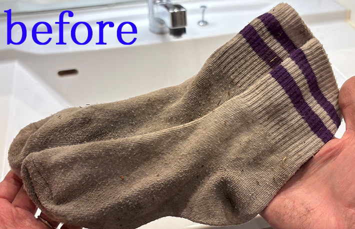 早速、汚れが目立つ靴下を洗って使い方を見ていきましょう。