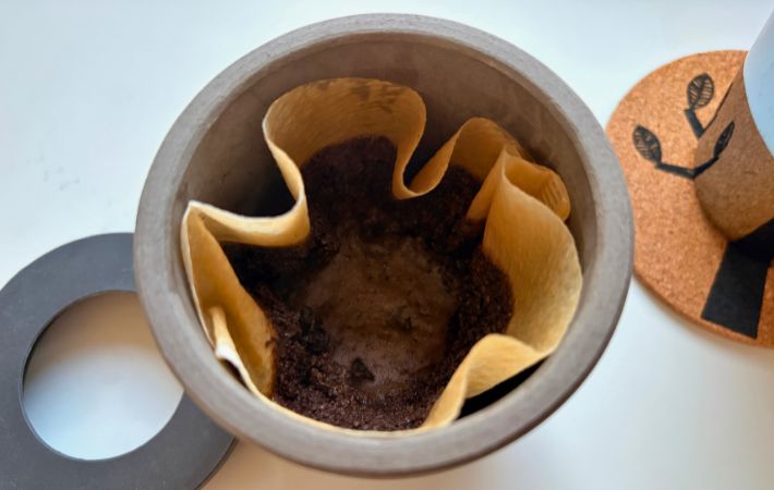 ただ、このことに気づいてからは、コーヒーかすの水分をよりしっかり切ってから入れるようにしています。