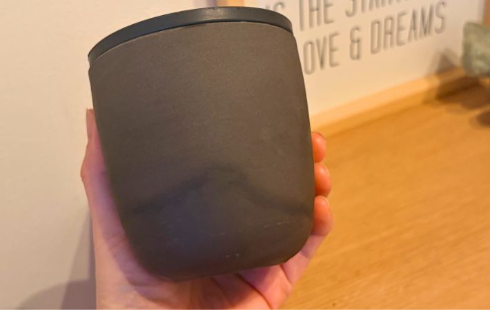 サイズは直径8.6cm×高さ9.6cmほどで、両手にすっと収まるくらい。