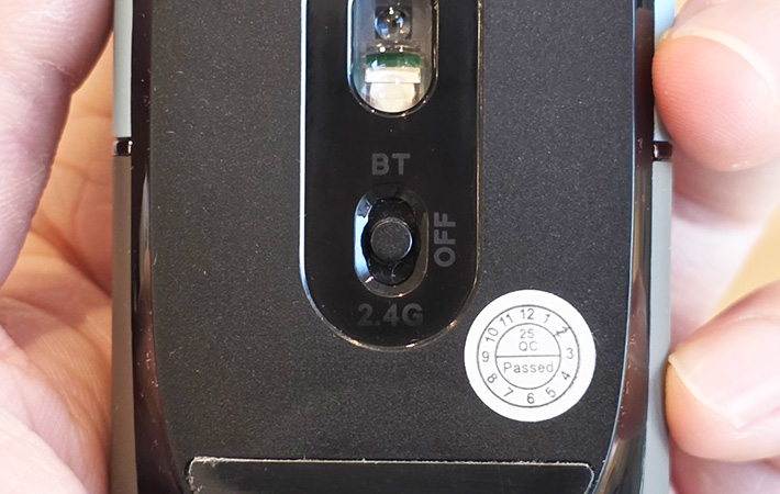 底面のスイッチを動かすだけで接続方式を変更できるため、パソコンによって使い分けたい場合や、Bluetoothが使えない環境でも柔軟に対応できますよ。