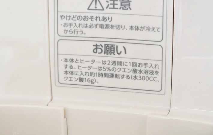 本体の注意書きでは、定期的なクエン酸洗浄が推奨されているので、洗浄用のクエン酸もセットで購入しておくのがおすすめです。