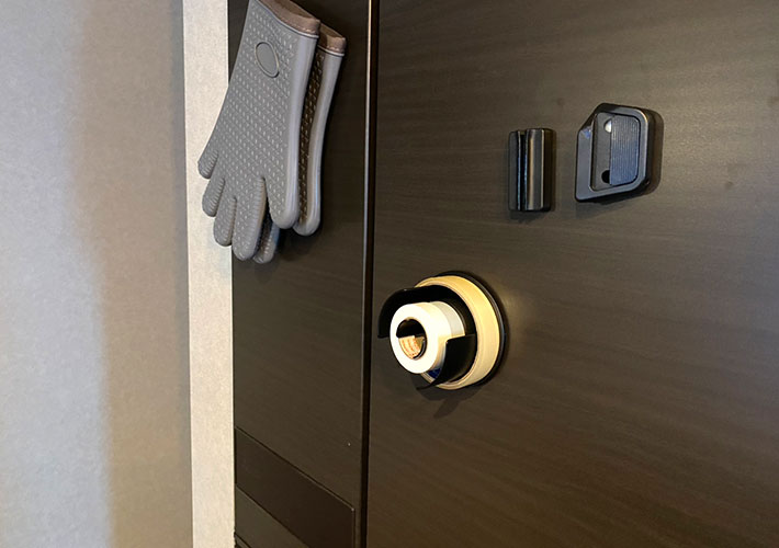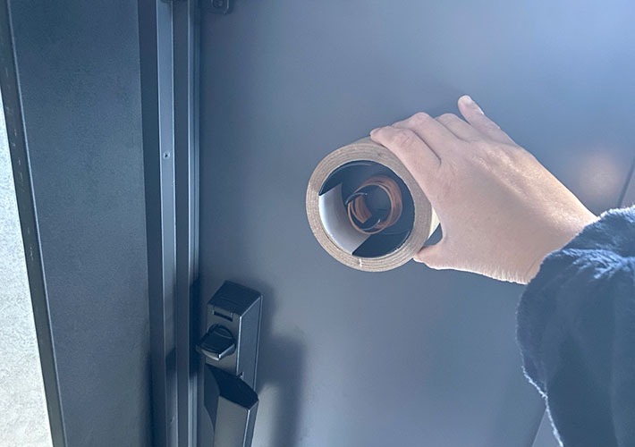 でも『マグネットテープホルダー』を玄関ドアに設置したことで、ワンアクションでガムテープを取れるようになって、めちゃくちゃラクに!
