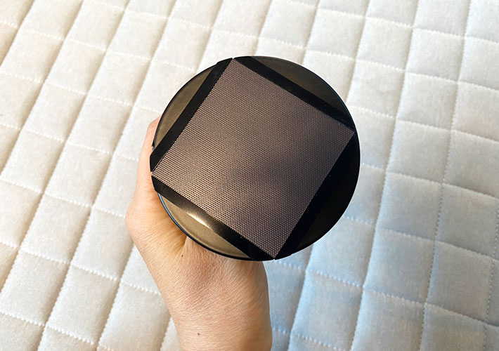 本体はスチール製で、重量が約200gあり、丈夫でしっかりしたつくり。サイズは幅9.3cm×奥行き5.5cm×高さ9.3cmほどで、テープが収まるほどよい大きさです。