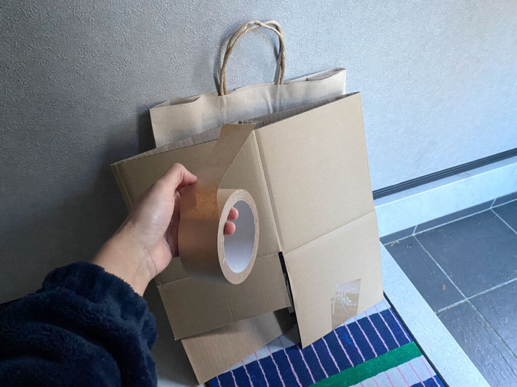 紙袋の口を閉じたり、まとめたダンボールを仮止めしたりと、ガムテープが欠かせません。