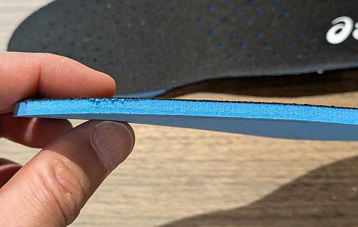 『アシックス』の『パフォーマンス中敷』を検証。クッション性は硬めながら、足への衝撃はしっかりと吸収し、安定性も高く感じました。