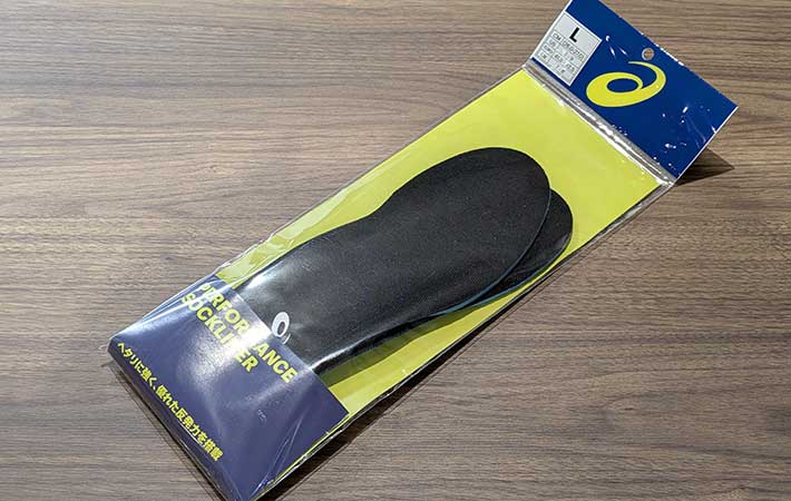 本記事で検証したインソールは、日本人の足にハマりやすいと人気のシューズメーカー『アシックス』の『パフォーマンス中敷』です。